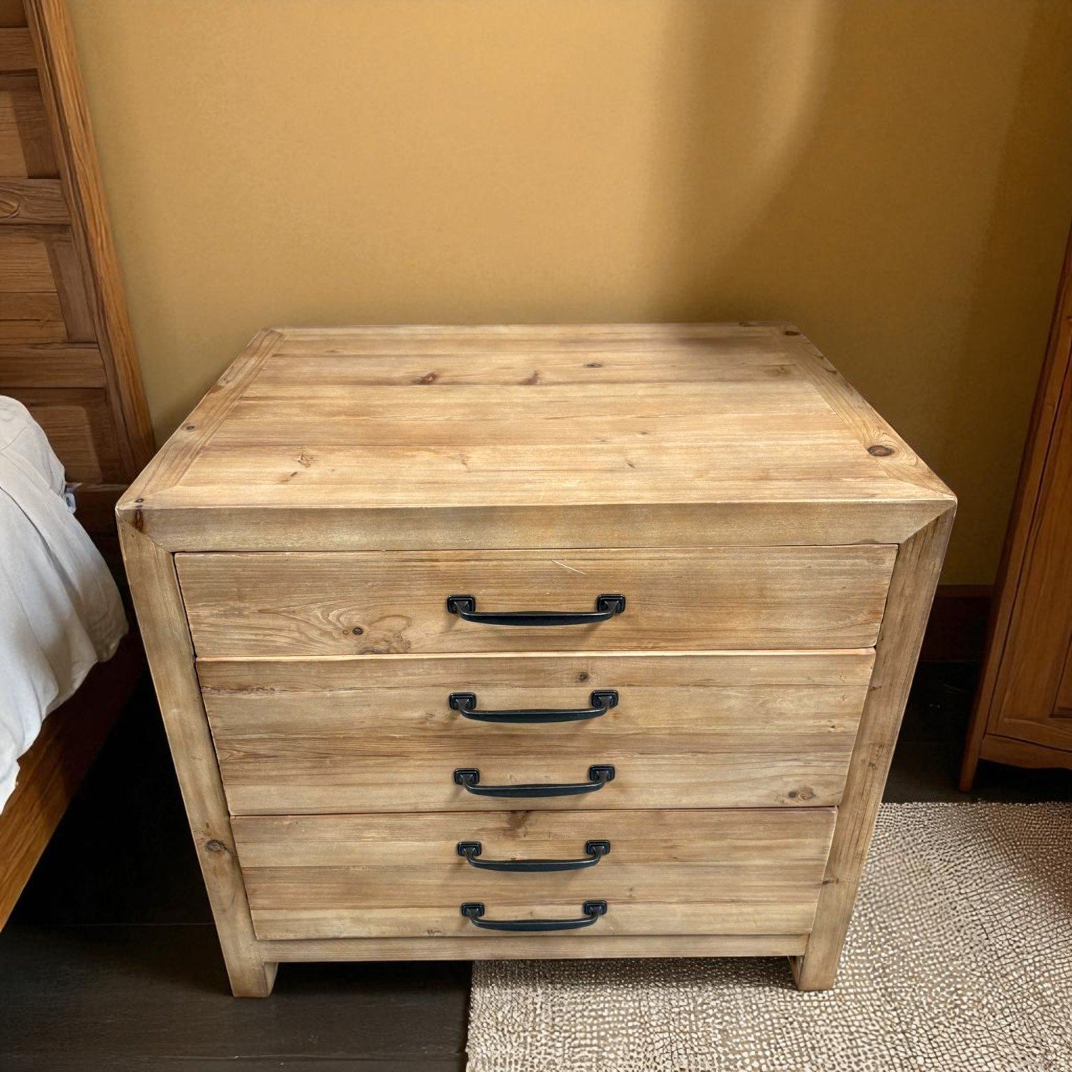 With ample storage options, our nightstand is designed for convenience. Featuring spacious drawers and an open shelf, you can keep your bedtime essentials—like books, glasses, or charging cables—organized and within easy reach. The smooth gliding drawers ensure a hassle-free experience anytime you access your stored items. Say goodbye to clutter and hello to streamlined organization!